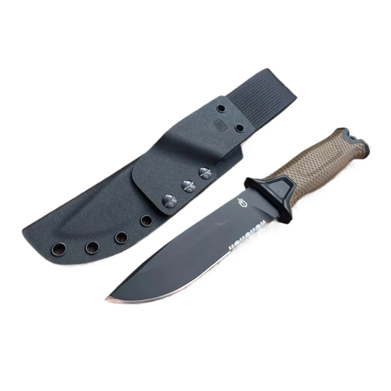 ပြင်ပအမဲလိုက်စခန်းချခြင်း ရှင်သန်ခြင်း Bushcraft Tactical Fixed Blade Knife နှင့် Kydex Sheath။
